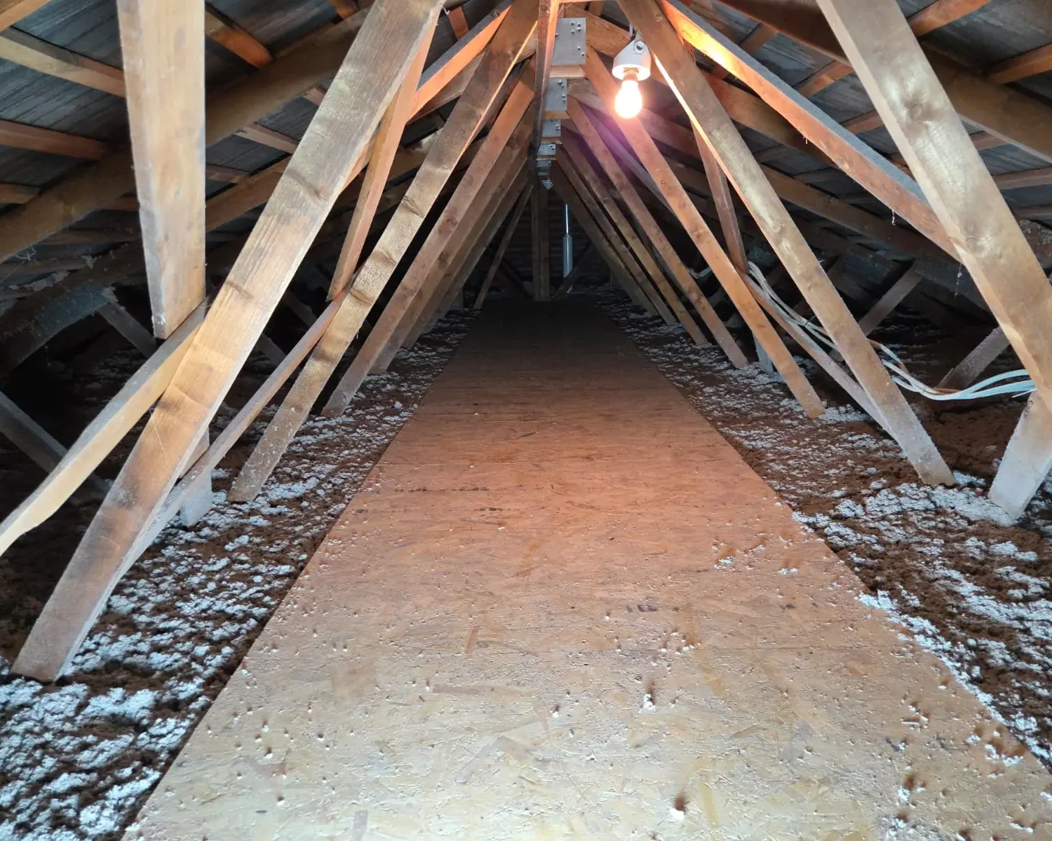 De tweede fase ging over de isolatie van de binnenmuren op 250 m², uitgevoerd tussen een houten structuur. Een schuimlaag van 16 cm dik werd aangebracht, met precisie bijgesneden om zich aan te passen aan de houten structuur en zo optimale isolatie te bieden.