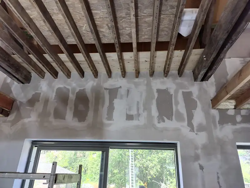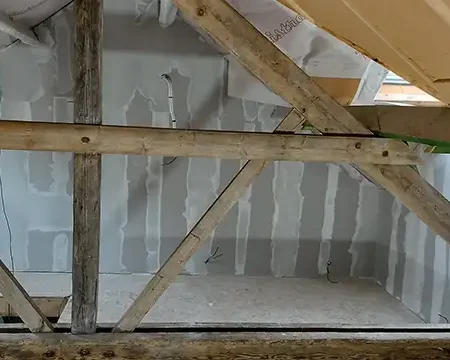 Bij dit project zorgde de klant zelf voor de dakisolatie, terwijl ons team van ISEO Projection instond voor de isolatie van de muren met H2O-schuim en de volledige binnenafwerking.