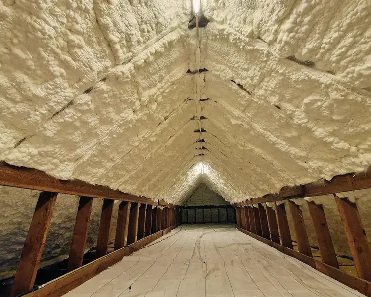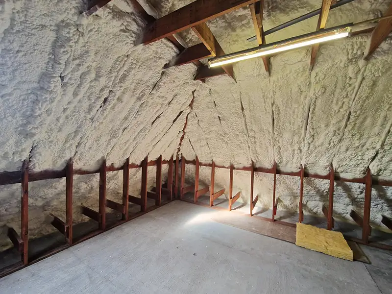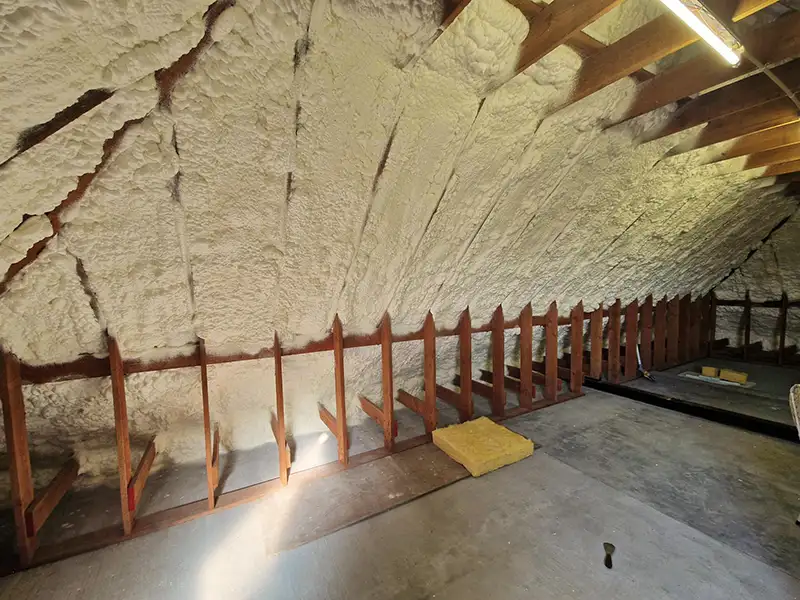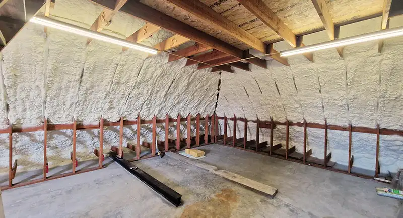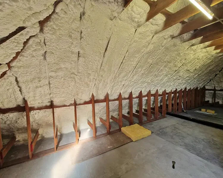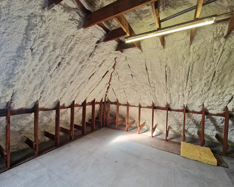 Voor deze werf hebben we schuim van het type H2O ICYNENE LITE+ gebruikt, een opencellig materiaal dat bekend staat om zijn hoogwaardige thermische en akoestische kwaliteiten, terwijl op een natuurlijke manier ademt waardoor er geen dampscherm meer geplaatst moet worden.