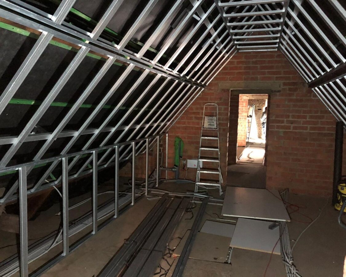 Tijdens dit project werden we geconfronteerd met een onderdak dat zich in een slechte staat bevond en ook niet-ademend was. We hebben dan ook besloten om na het schuimen een extra dampscherm te installeren om volledige bescherming tegen vocht te garanderen. Voor de afwerking heeft ISEO Projection met veel zorg de gipsplaten bevestigd. Deze werden zorgvuldig afgestreken zodat de ondergrond schilderklaar was afgewerkt.