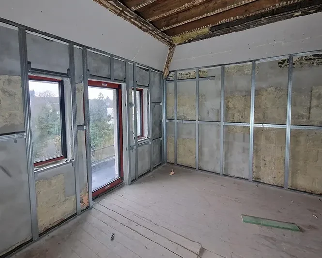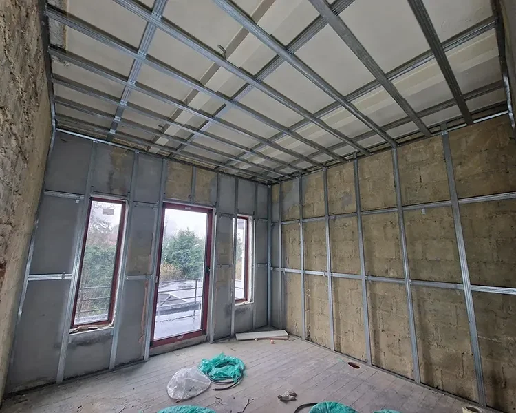 Plaatsing van een Metalstud-structuur vóór de isolatie