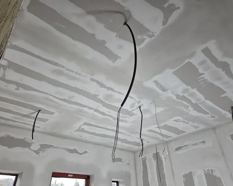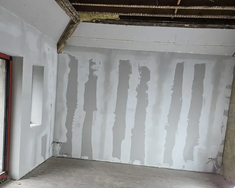 Alles werd afgewerkt met gipsplaten, afgestreken zodat het geheel schilderklaar was.