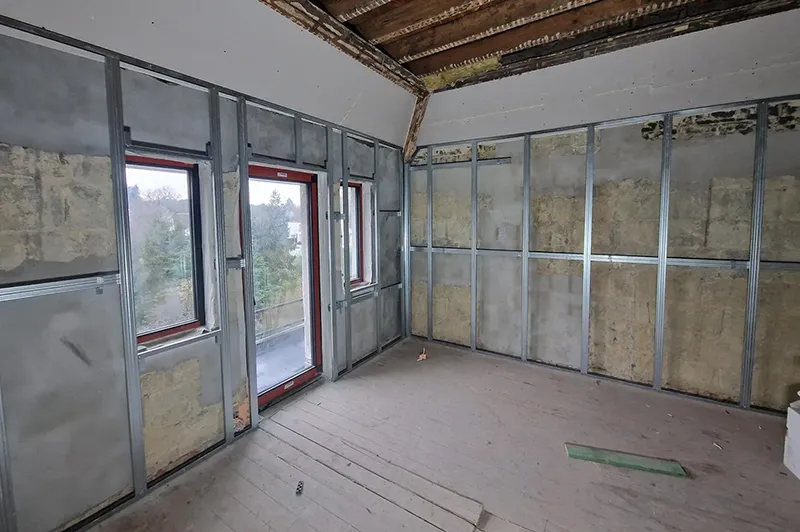 Plaatsing van een Metalstud-structuur vóór de isolatie