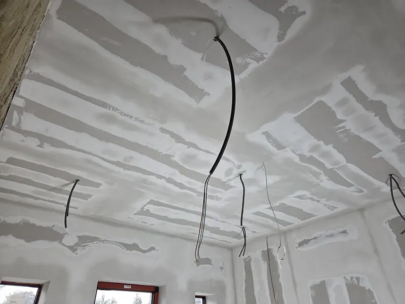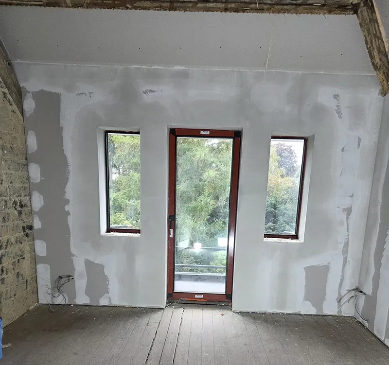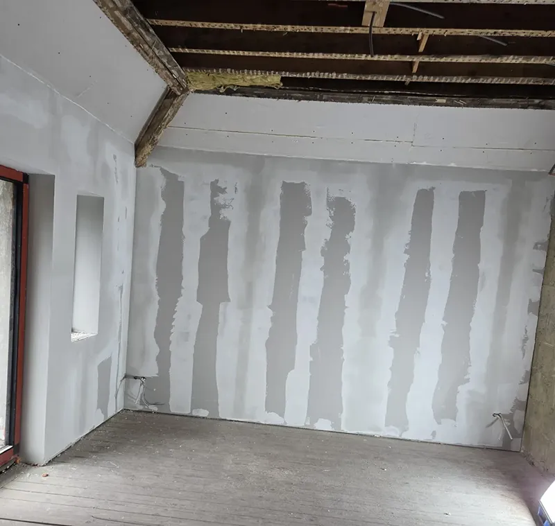 Alles werd afgewerkt met gipsplaten, afgestreken zodat het geheel schilderklaar was.