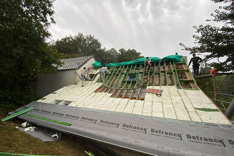 ISEO Projection a isolé une toiture de 190m² à Burg Reuland avec la mousse ICYNENE. Efficacité énergétique garantie.
