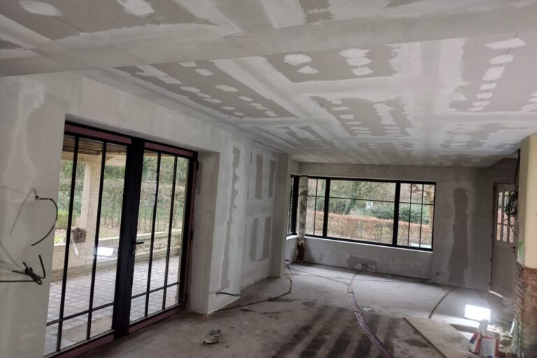 Plaatsing van kader in Metal Stud, isoleren van muren, plafonds, dak en zoldervloer + afwerking met ipsplaten in Schild