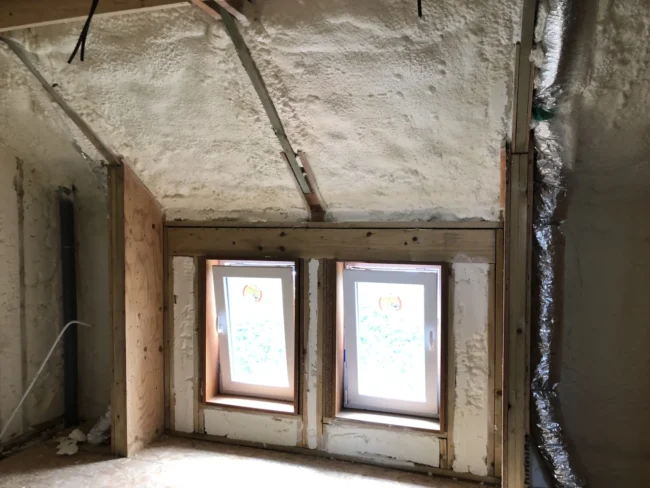 À Gesves, ISEO Projection a isolé 38,5 m² de murs d’un grenier en ossature bois avec 15 cm de mousse ICYNENE Lite+. Une solution efficace pour un confort optimal.