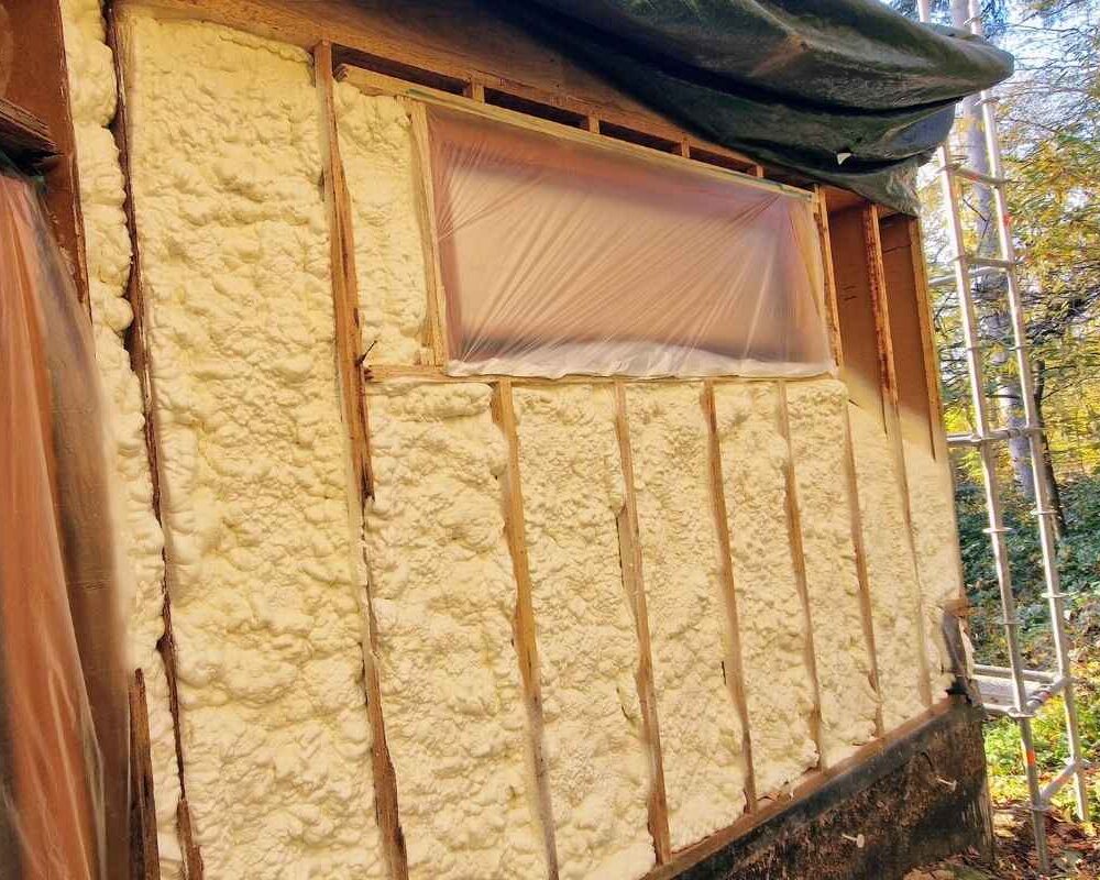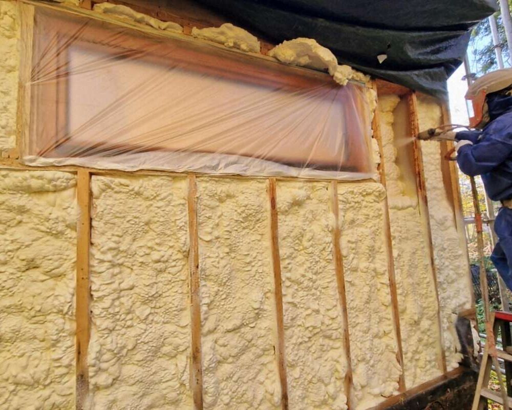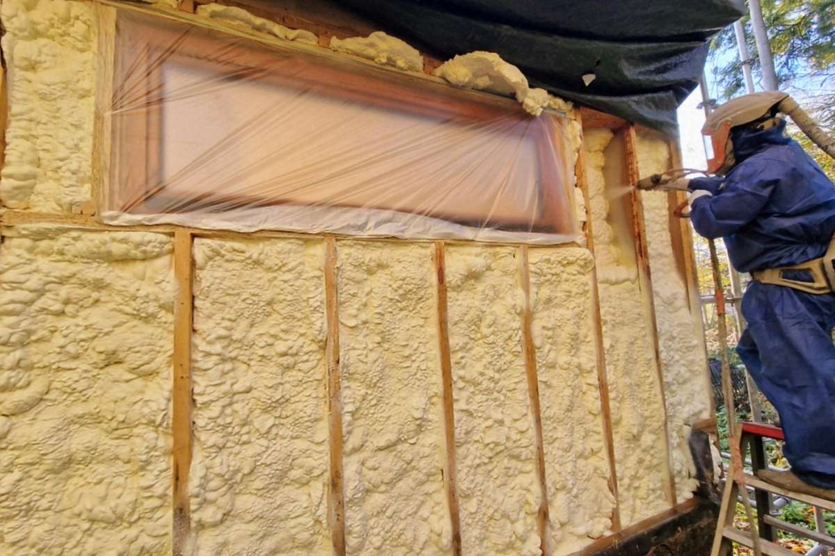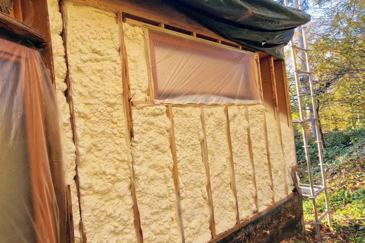 Le chantier consistait à isoler les murs par l’extérieur, entre une structure en bois, avec une mise en œuvre garantissant une isolation uniforme sur toute la surface. Cette logique rejoint les avantages de l’isolation projetée : une application rapide, homogène et efficace, même sur des zones complexes.