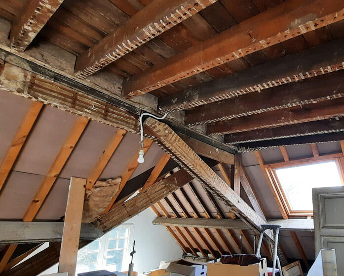 - Type de réalisation : Isolation de la toiture par l’intérieur pour un ancien manoir